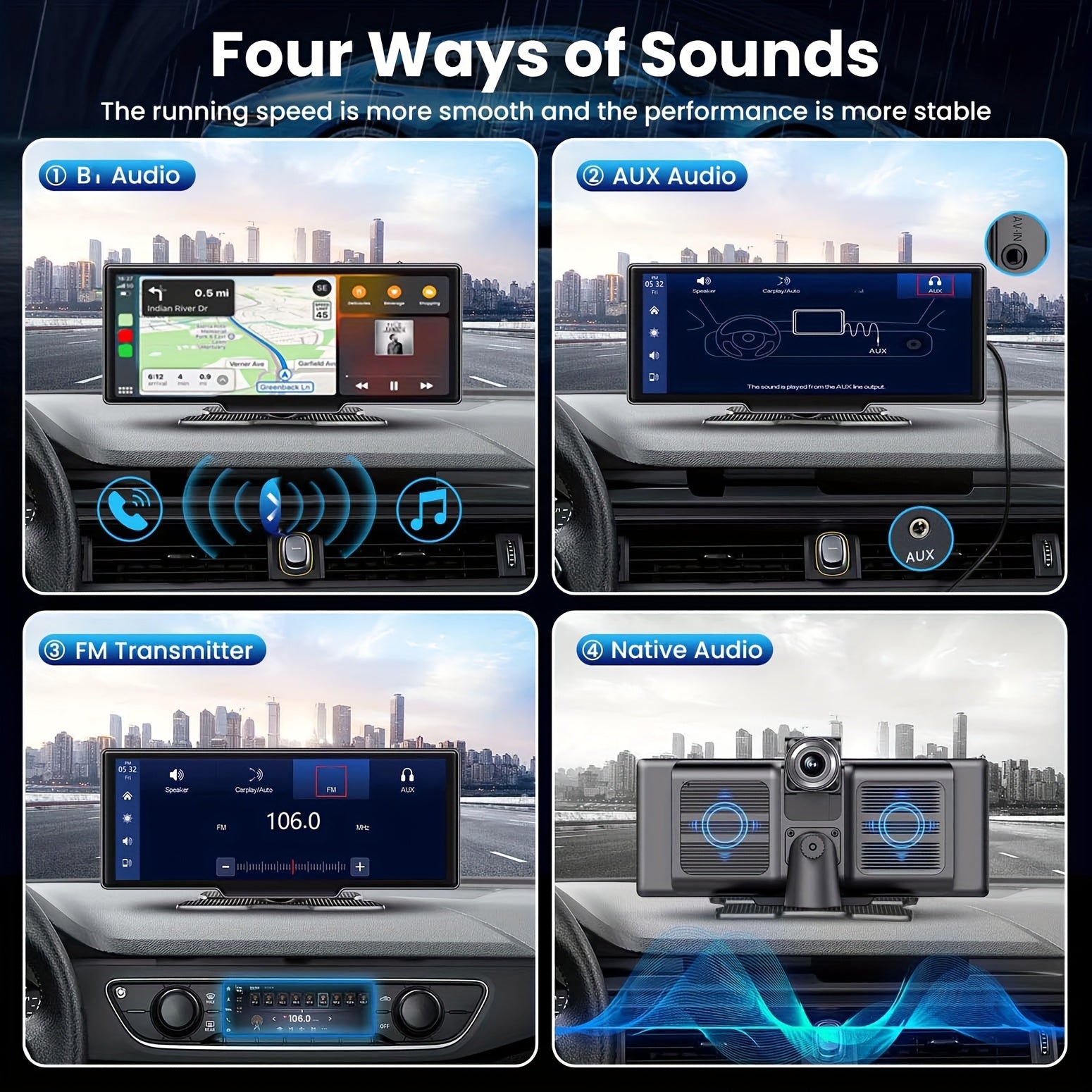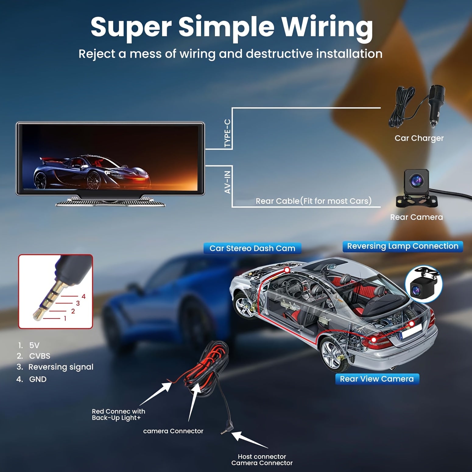 26.06 cm Wireless Car Stereo with 4K Dash Cam IPS Touchscreen and Backup Camera