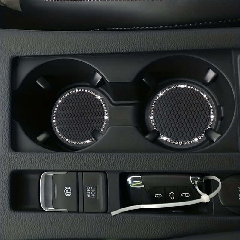 2pcs Car Coasters Creative Honeycomb Diamond Rhinestone Non-Slip Storage Pads