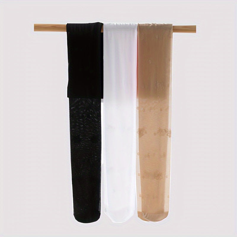 Girls' Nylon Blend Tights with Floral Jacquard Solid Color All-Season Kids' Leggings Pack