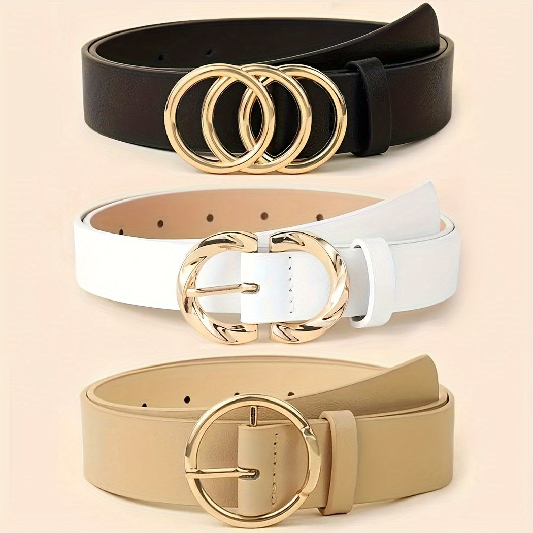 Women's Belts 3-Piece Set with Metal Buckle Designs for Jeans and Dresses Casual Stylish
