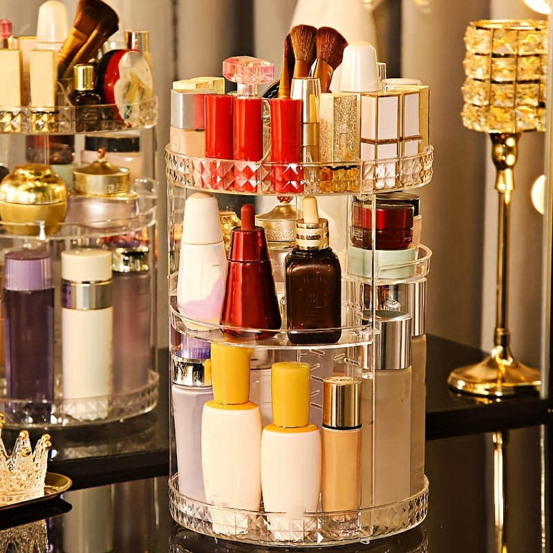 360 Degree Rotatable Acrylic Cosmetic Storage Rack Large Capacity for Makeup Brushes