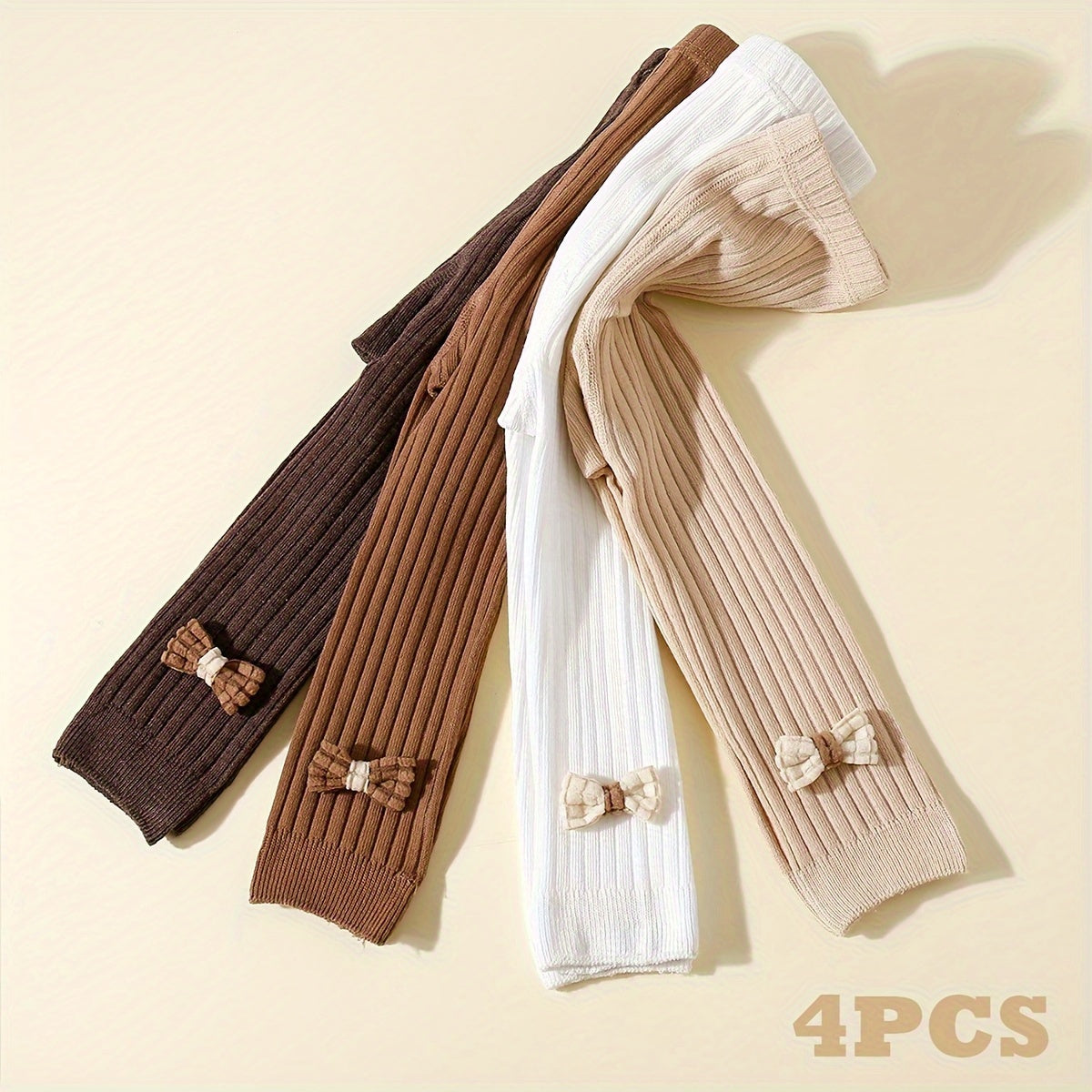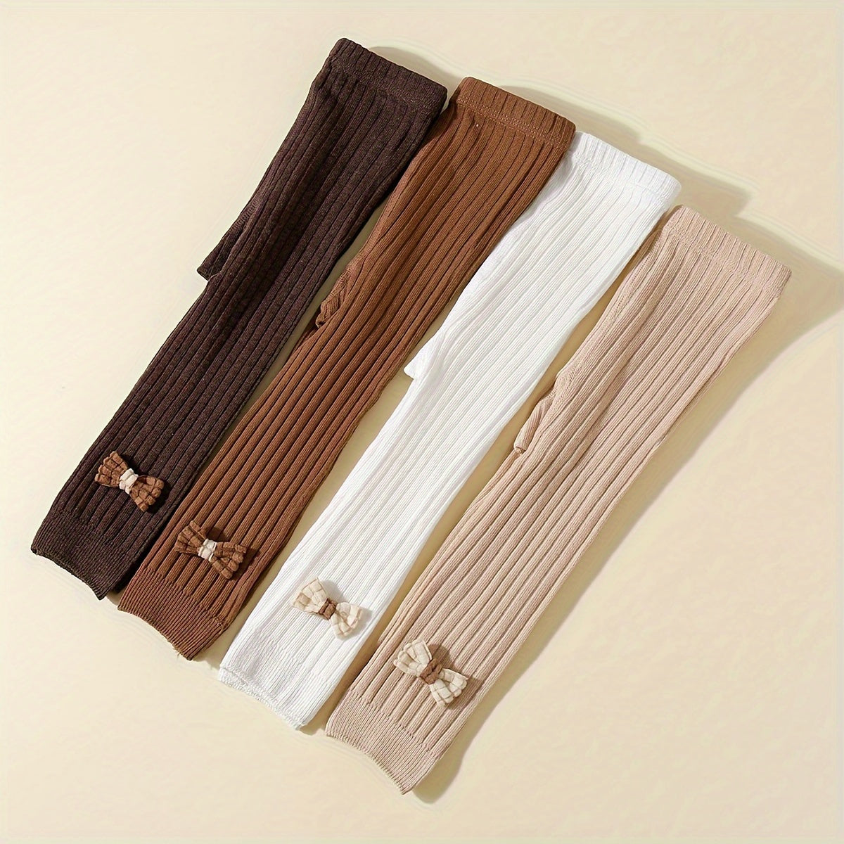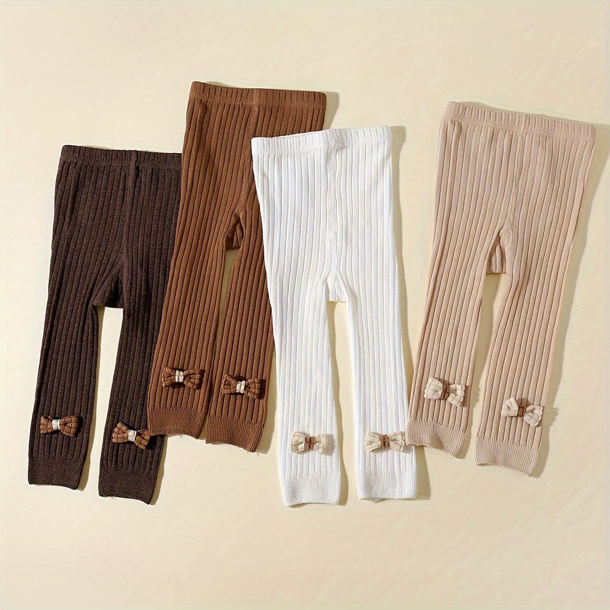 Girls' Ribbed Leggings Set with Bow Detail Soft Polyester Blend All-Season
