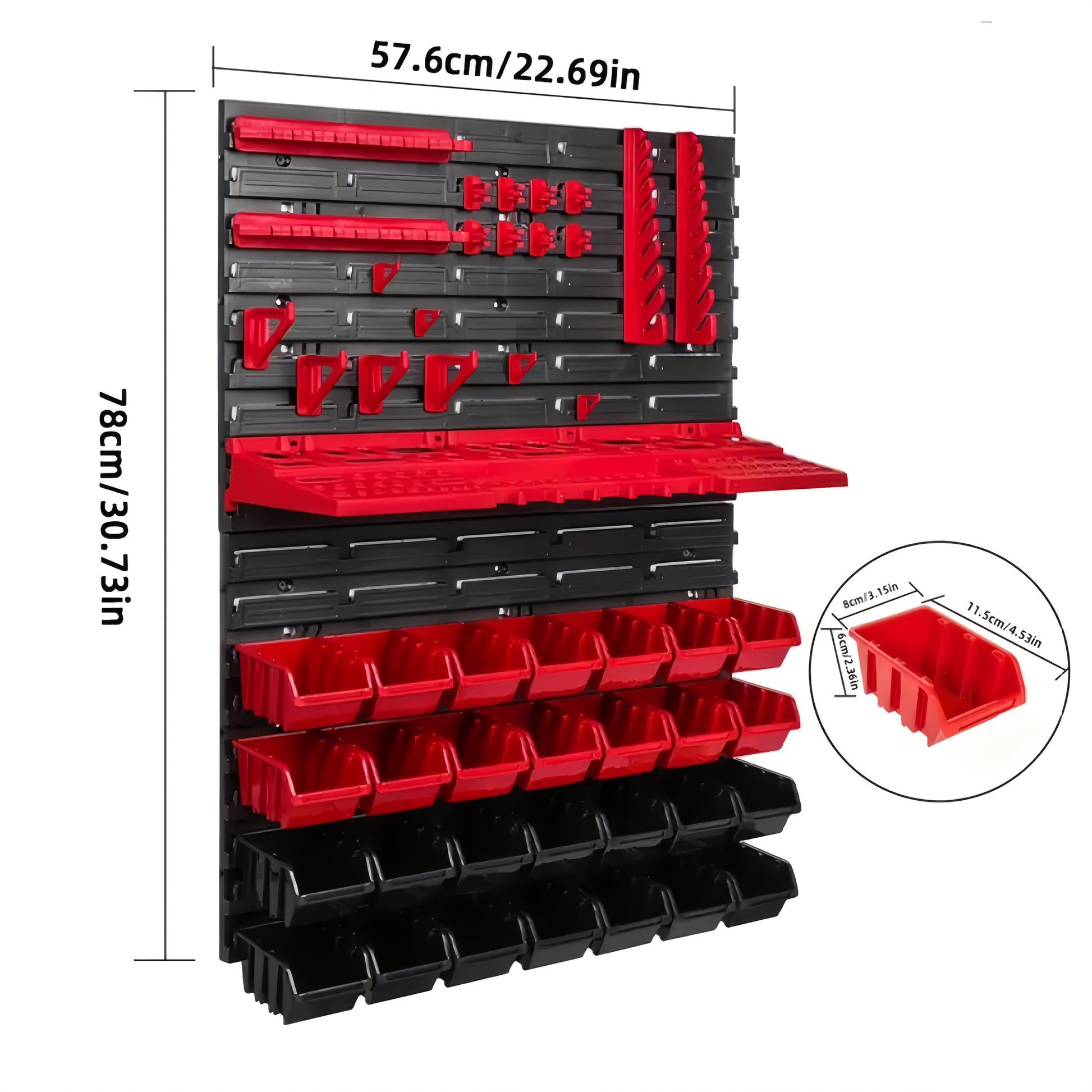 49pcs Heavy-Duty Wall-Mounted Tool Organizer Rack Black Plastic Garage Storage