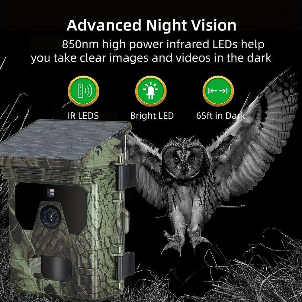 4K Wildlife Trail Camera Solar Powered 50MP IPX-5 Waterproof with Auto Focus