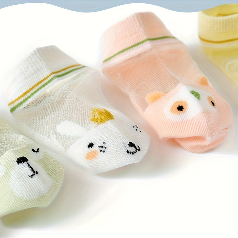 Girls' Mid-Calf Cartoon Animal Socks Set 5 Pairs Soft Polyester All-Season
