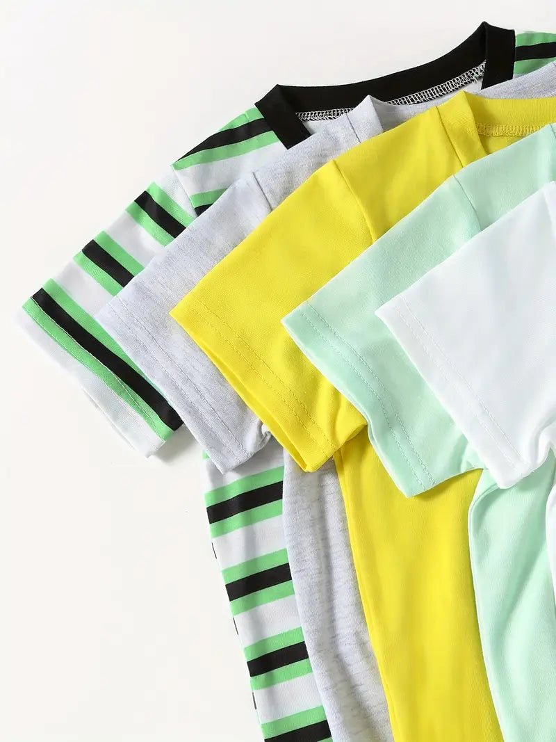 Men's Short Sleeve Summer T-Shirts Pack of 5 Polyester Blend Casual Running Solid Striped