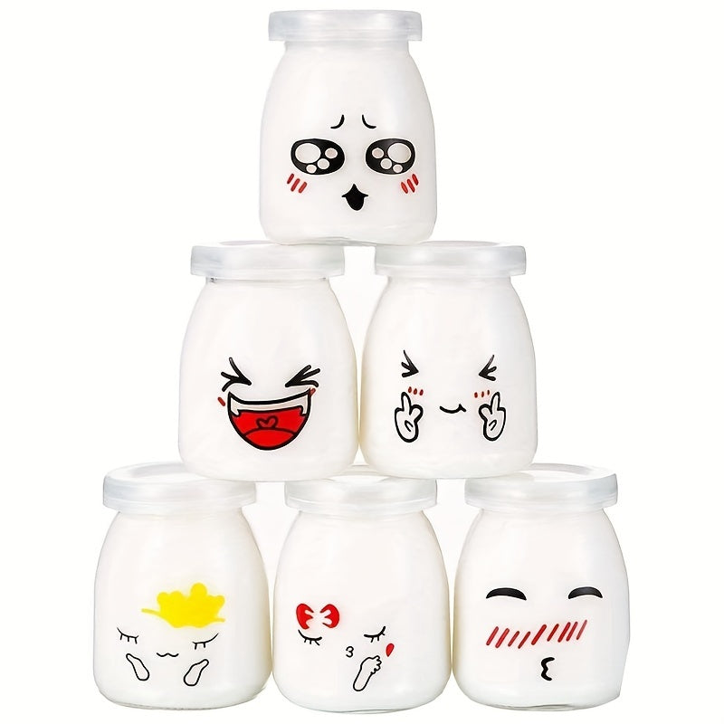 Set of 6 Glass Jars 150ml with Flip Top Lids for Yogurt Pudding Honey Jam Reusable