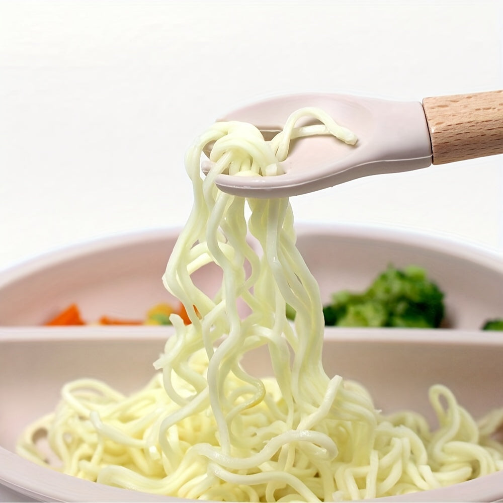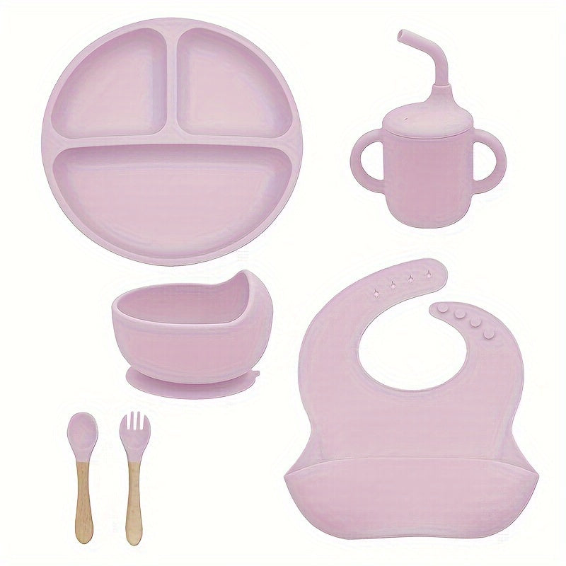 6-Piece Silicone Feeding Set with Divided Plate and Wooden Utensils for Self-Feeding