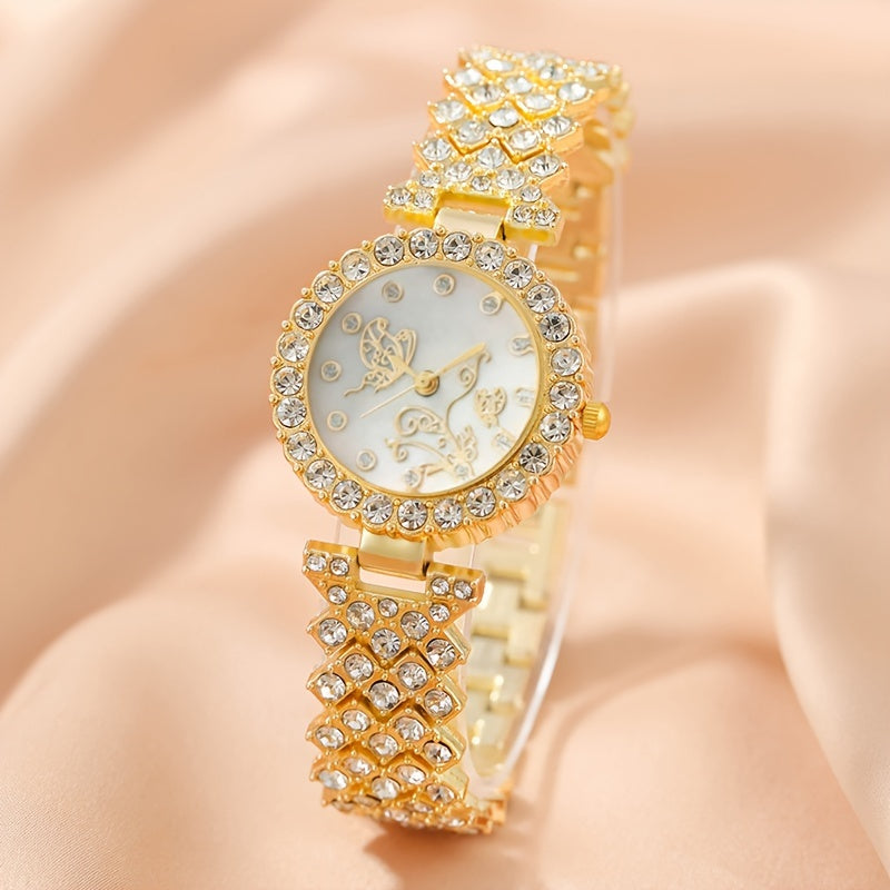 6-Piece Women's Gold-Tone Quartz Watch Jewelry Set with Rhinestones Vintage Gift