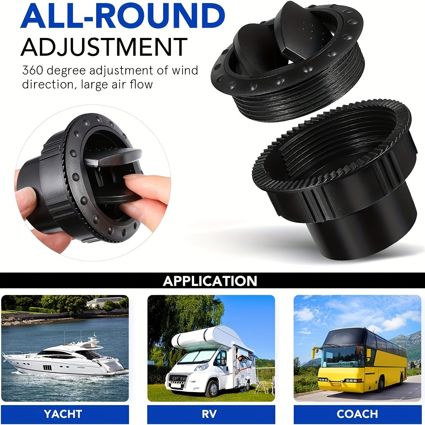 60mm Black Gray Round Car Ventilation Outlet ABS Plastic for RV ATV Bus Electric Vehicle