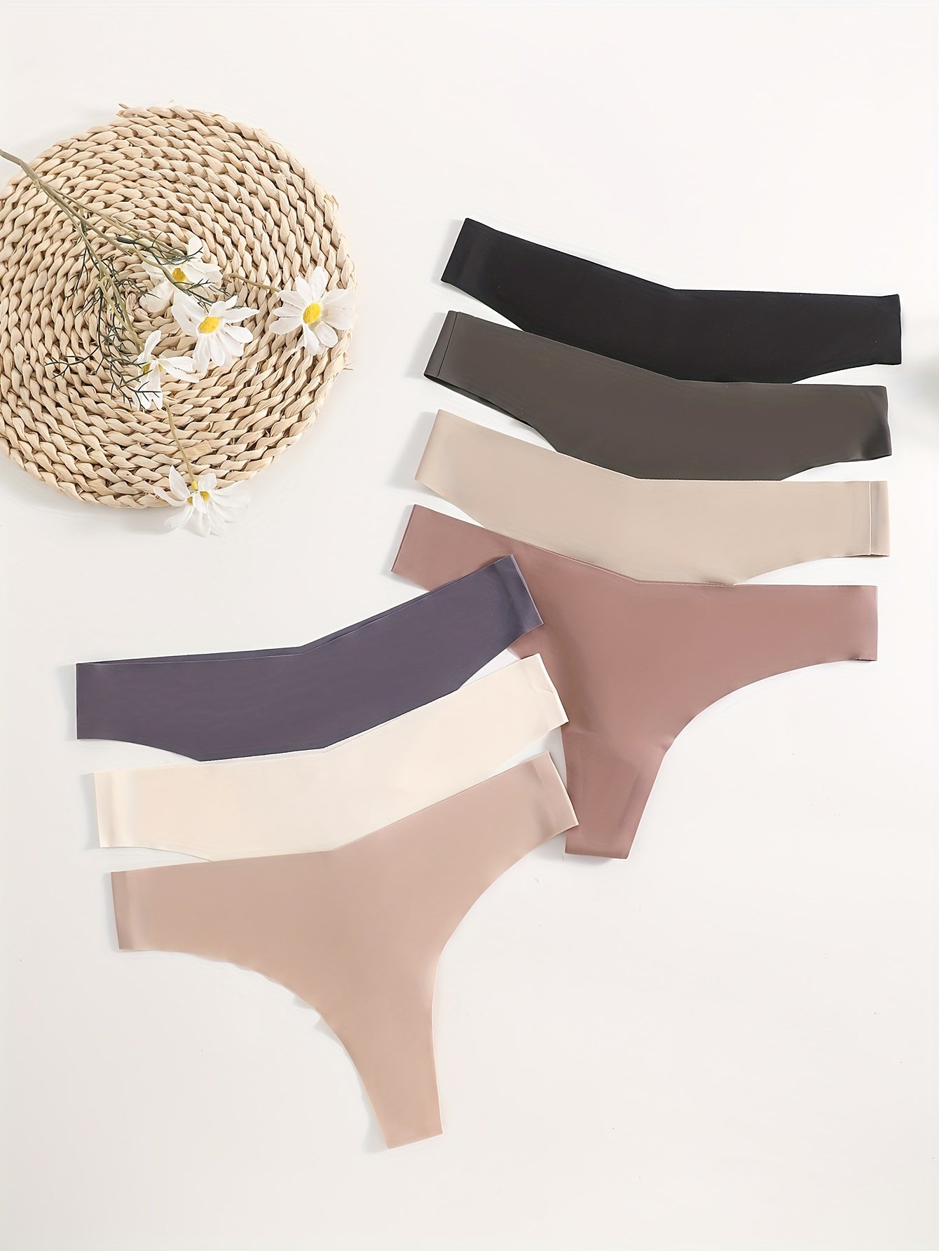 Women's Solid Seamless Thongs Soft Comfortable Intimate Wear Set of 7