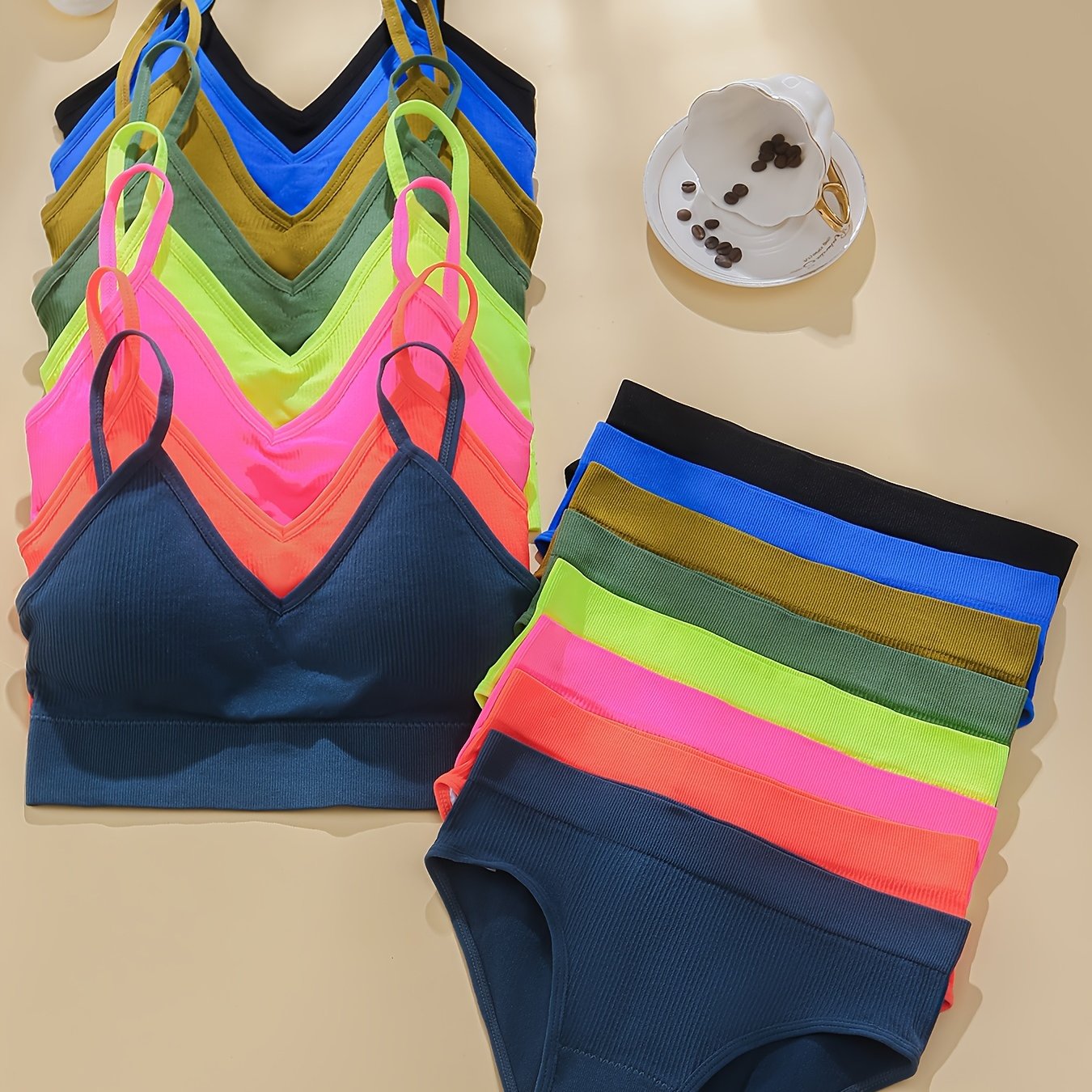 Seamless Ribbed Lingerie Set for Women with 8 Pieces