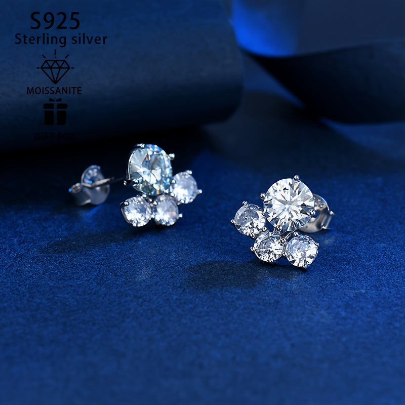 925 Silver Stud Earrings with 2-Carat Mozambique Stone for Women