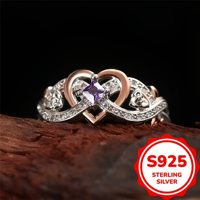 Sterling Silver Infinity Heart Ring with Purple Synthetic Zirconia Engagement Jewelry