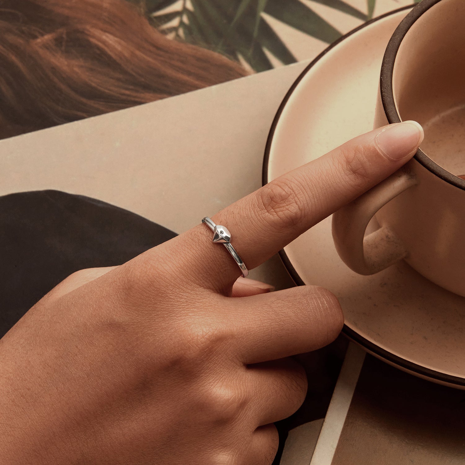 Women’s Adjustable Sterling Silver Ring with Cubic Zirconia and Open Design
