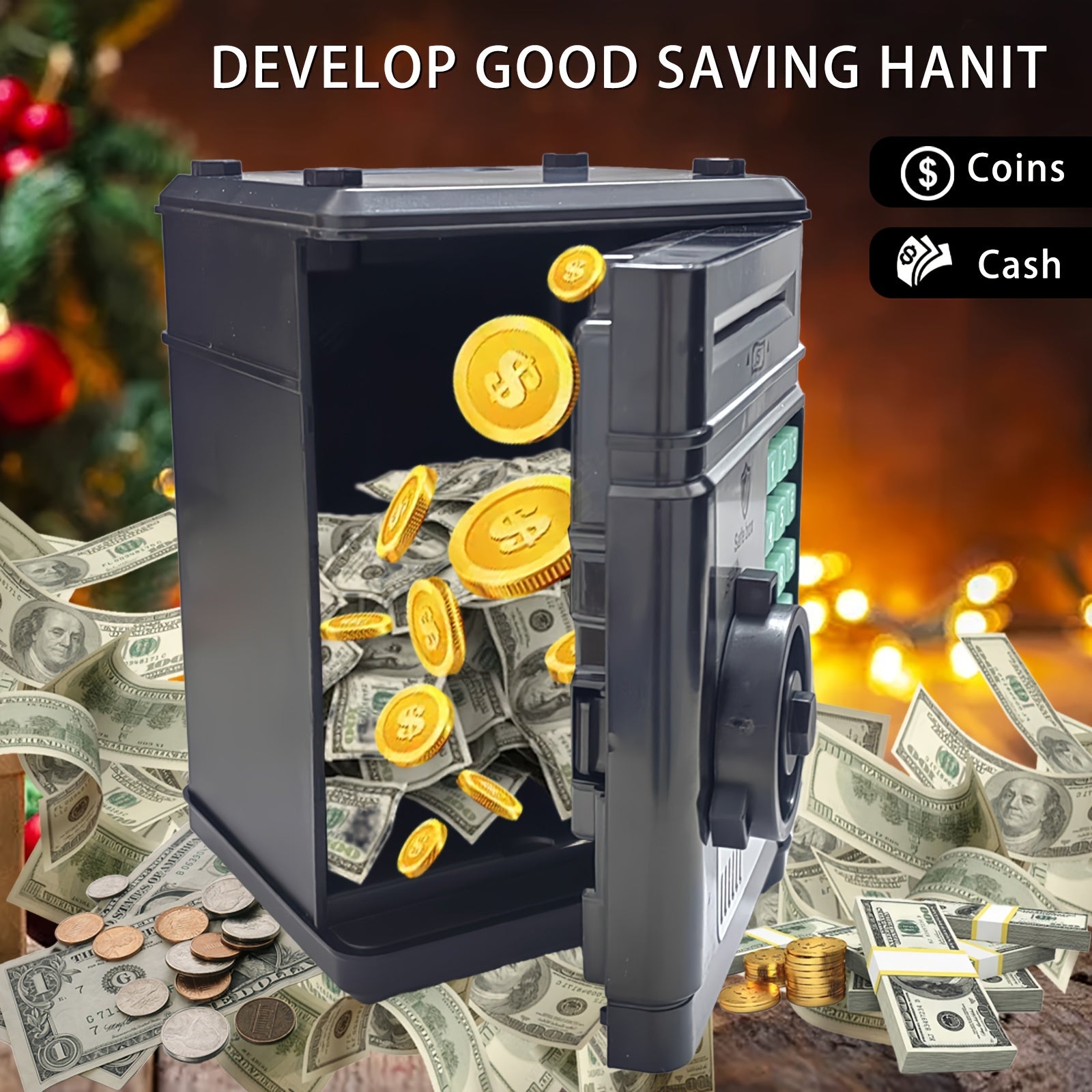 ABS Resin Piggy Bank for Kids with Password Lock Black 6+ Gift Holiday Birthday