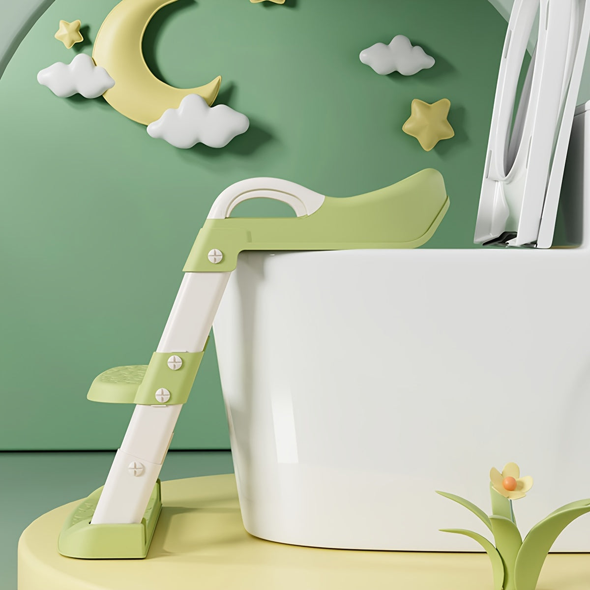 Kids Adjustable Height Step Stool with Safety Handles and Foldable Plastic Chair