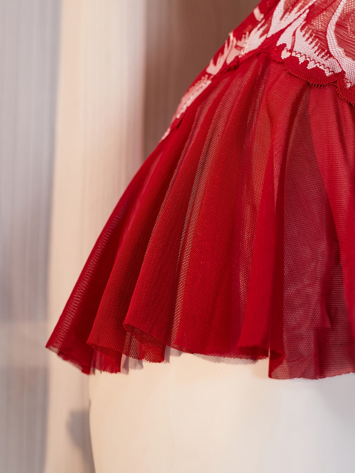 Adult Lace Bodysuit with Random Print Large Bow Nylon No Padding