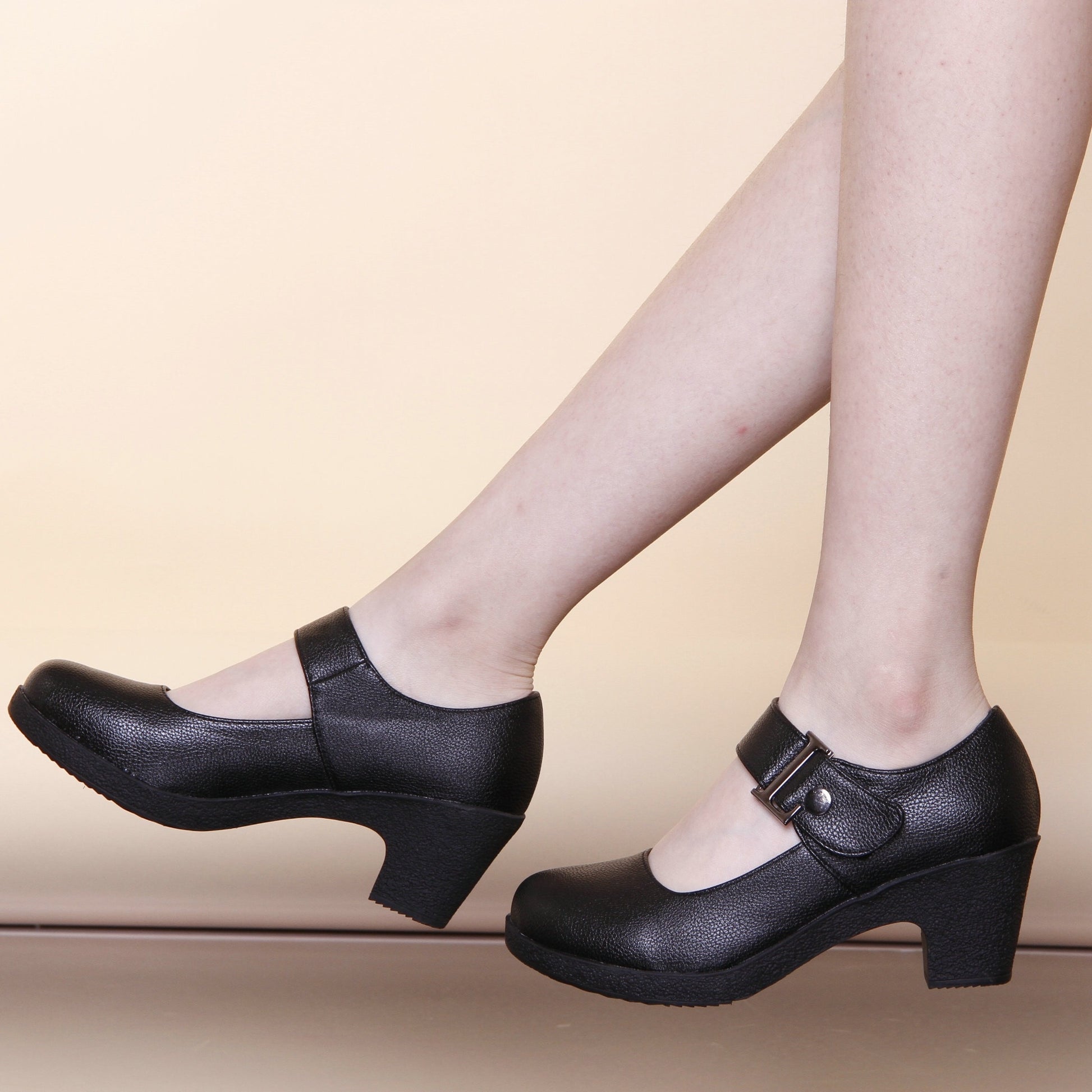 Women's Faux Leather Mid-Heel Dance Shoes with Non-Slip Rubber Sole Adjustable Straps for Modern and Square Dancing