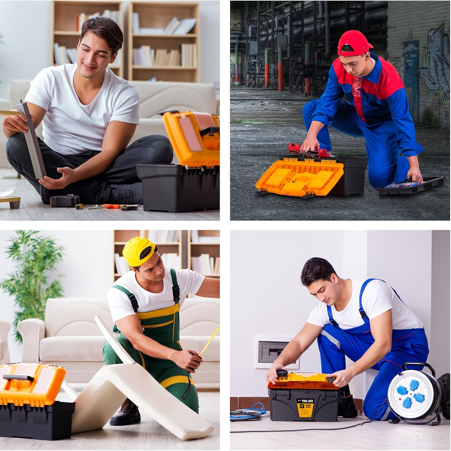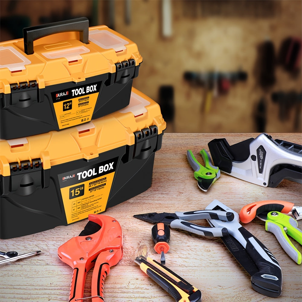 Plastic Toolbox Set 12 and 15 Inch Heavy Duty Storage Suitcase for Home Garage and Workshop