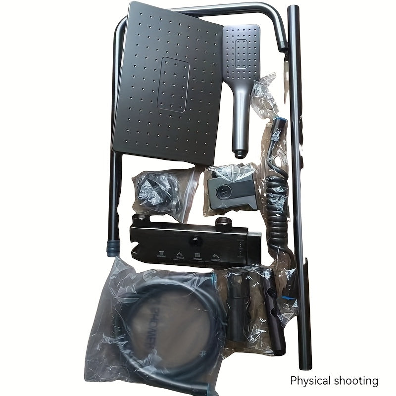 Aluminum 4-Way Shower System with Thermostatic Mixer Rainfall Handheld Bidet Tub Outlet