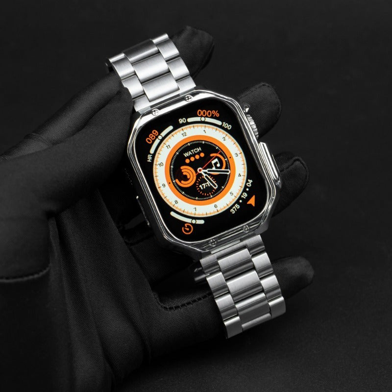 Stainless Steel Smartwatch Strap for Apple Watch S7 S8 S9 with Folding Buckle and TPU Cover
