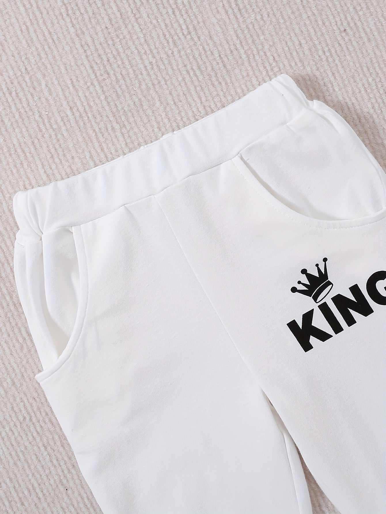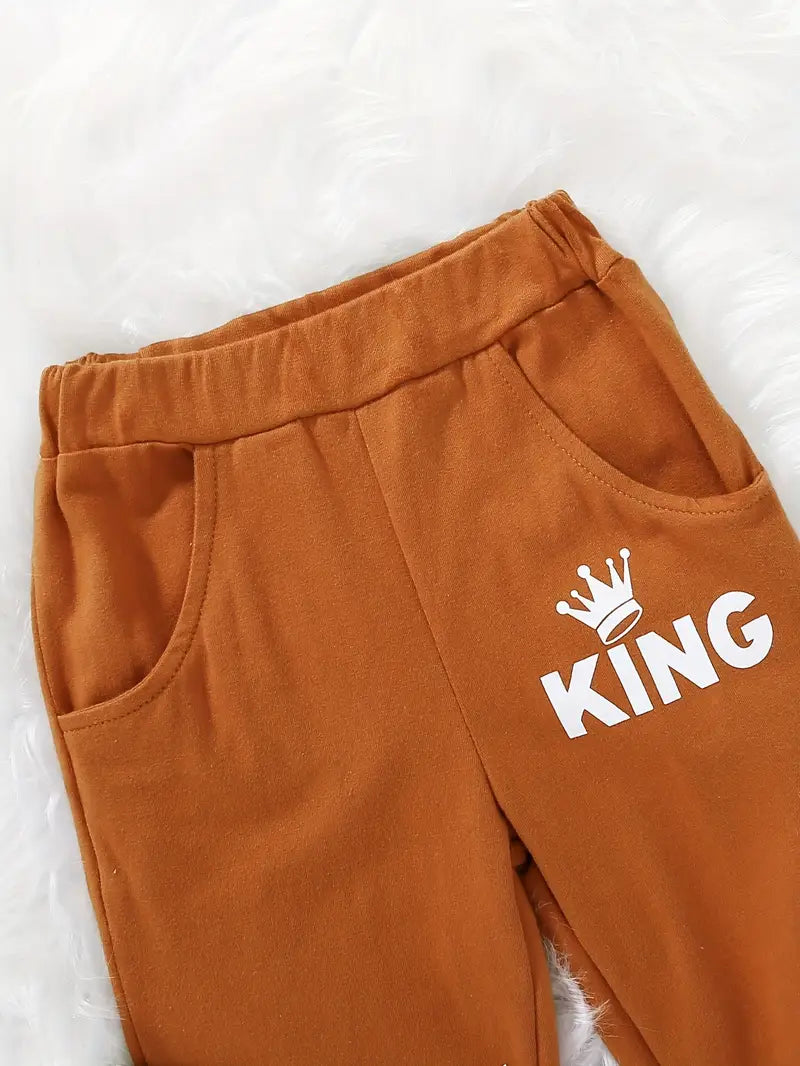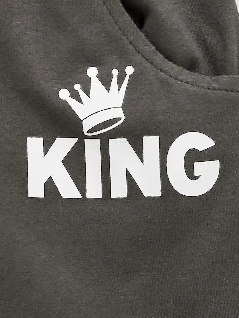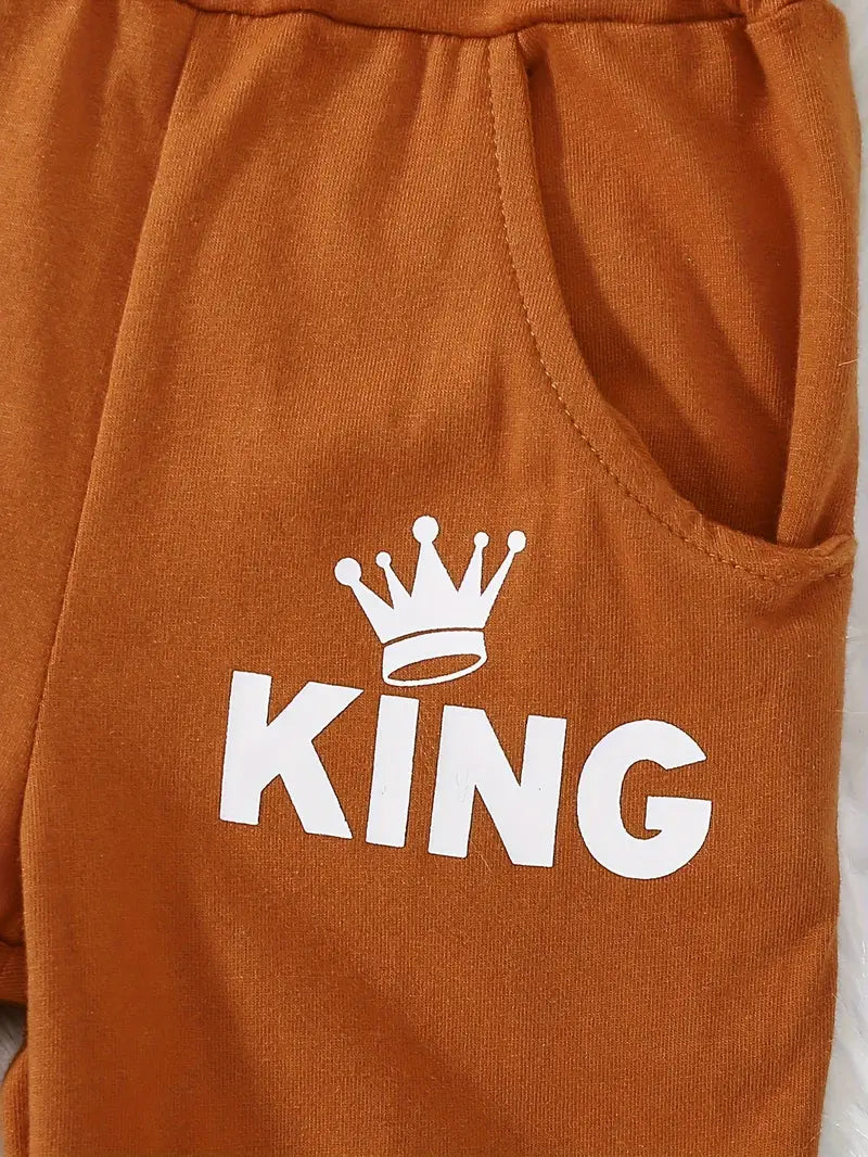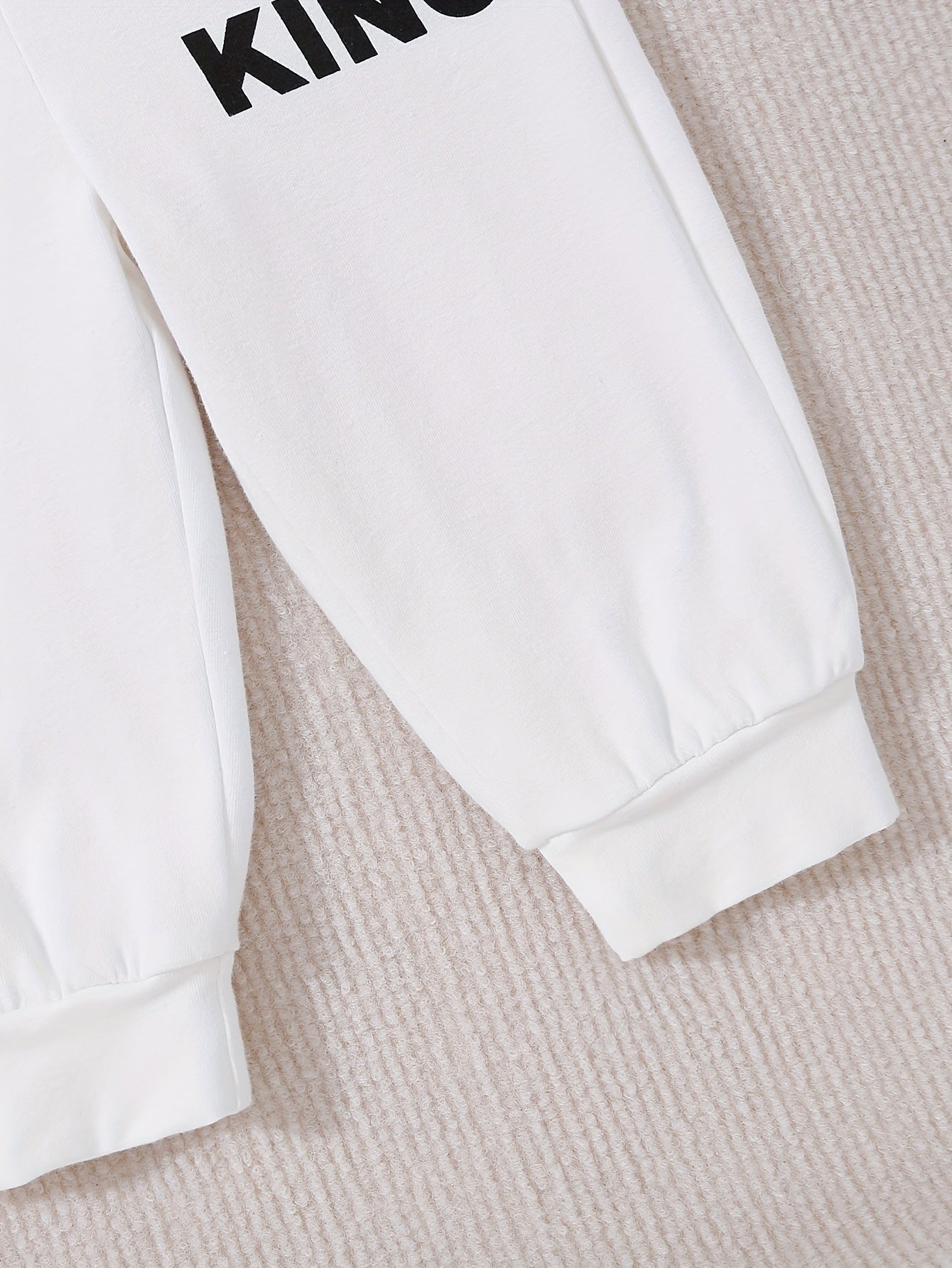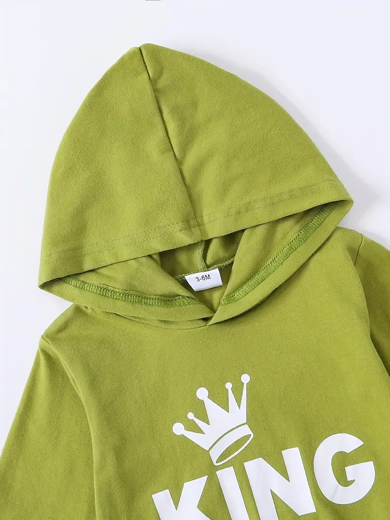 Baby Boy's Casual Outfit Set Cotton Hooded Sweatshirt and Pants with KING Print