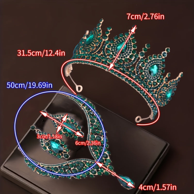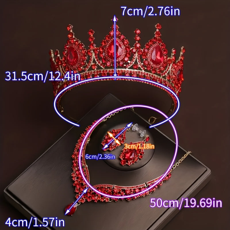 European Style Bridal Rhinestone Hair Accessories Set with Crown Necklace and Earrings