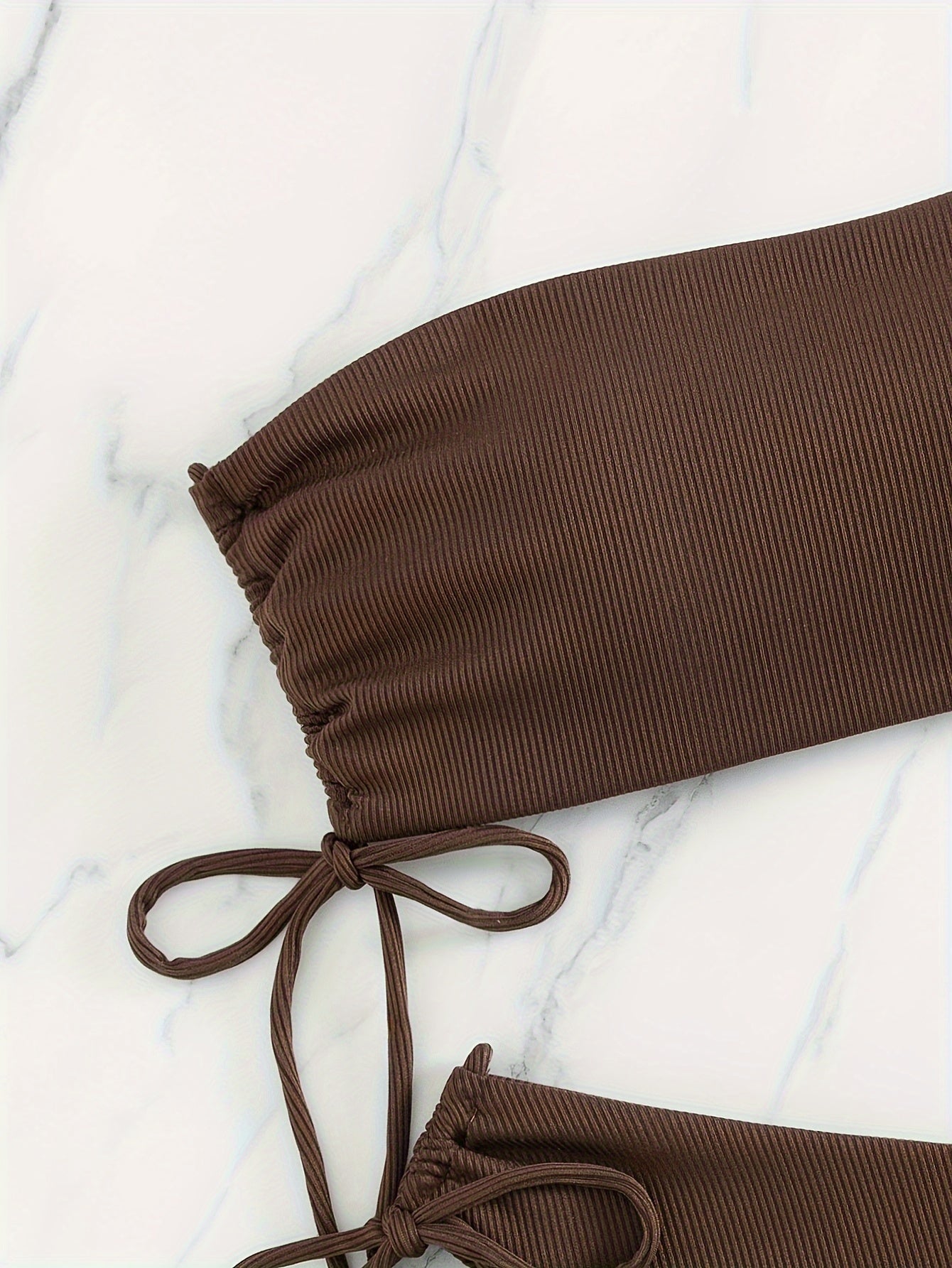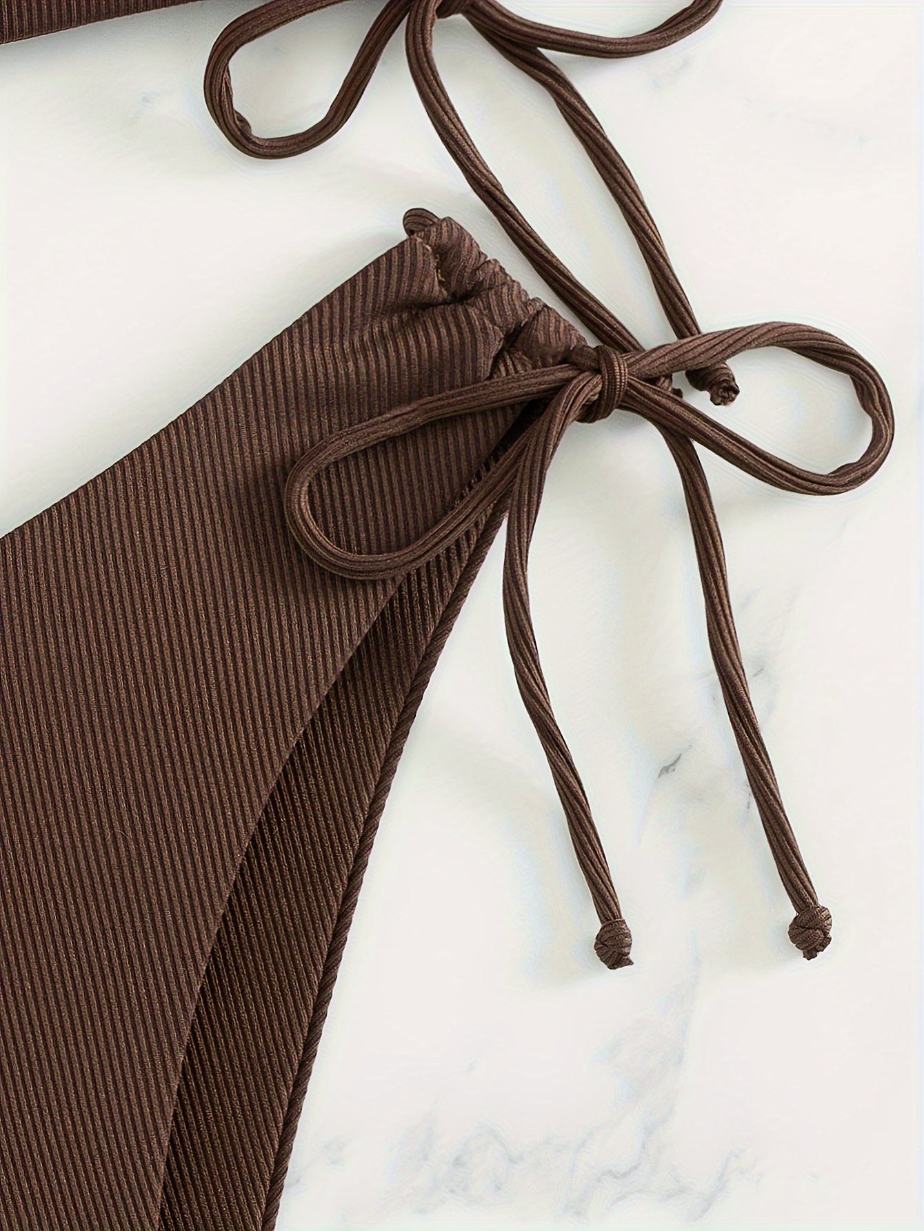 Ribbed Bikini Set with Drawstring Side Tie Top and Bottom for Women