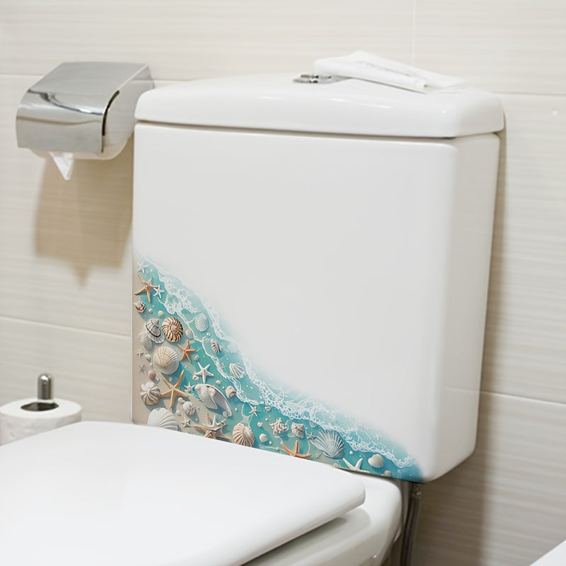 Beach Themed Toilet Lid Decal Starfish Conch Shell Bathroom Wall Sticker for Christmas Halloween