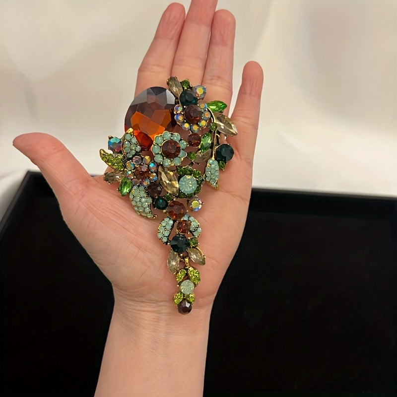 Antique-Style Brooch with Brown and Green Crystals in Alloy, Elegant Gift
