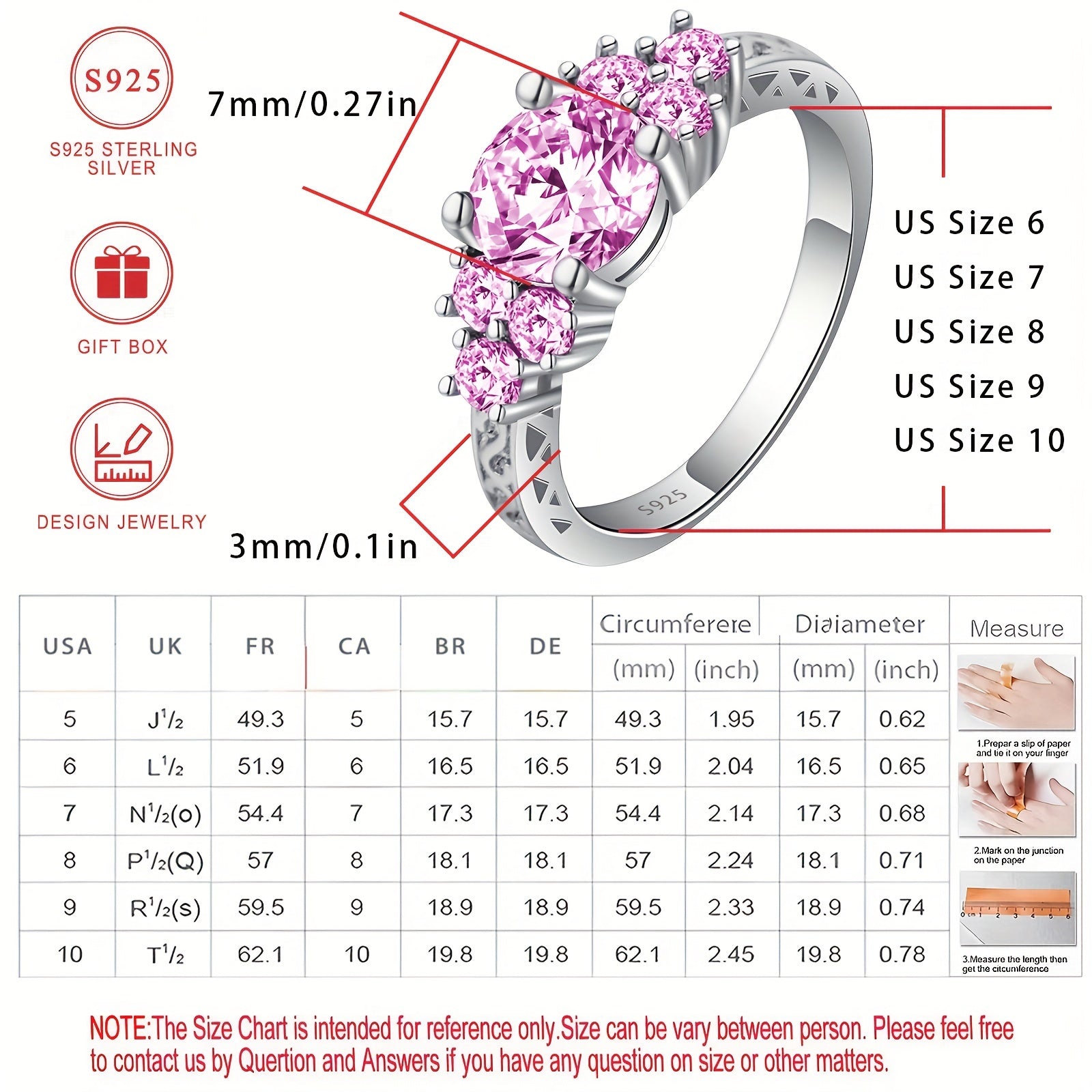 Sterling Silver Promise Ring with Pink Cubic Zirconia for Engagement or Wedding
