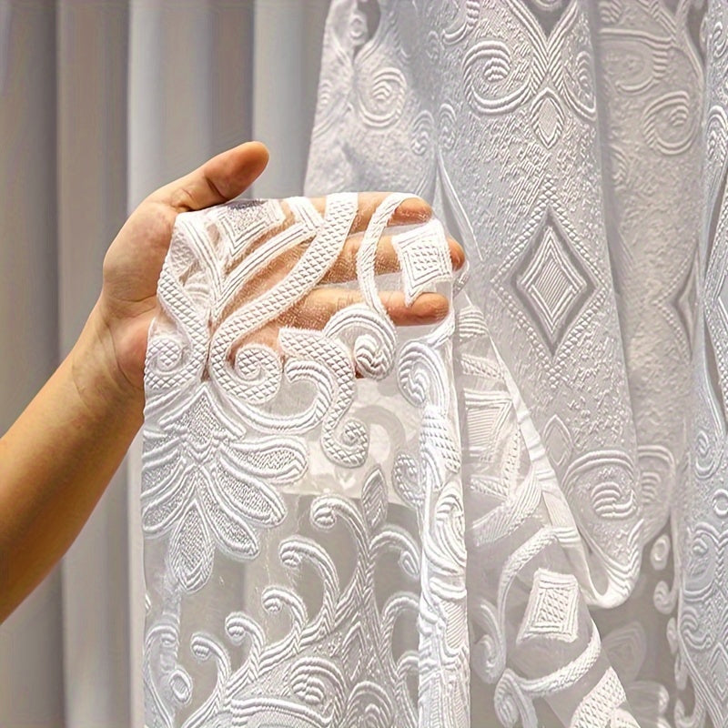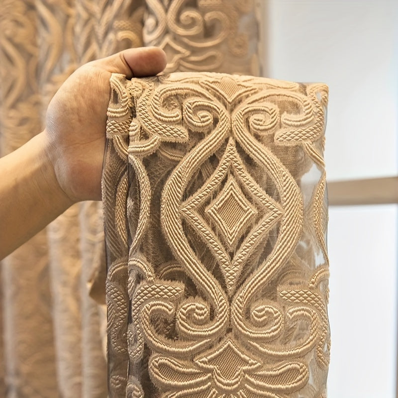 Sheer Curtains Set of 2 Brown and White European Villa Style Jacquard Embroidered for Living Room Bedroom
