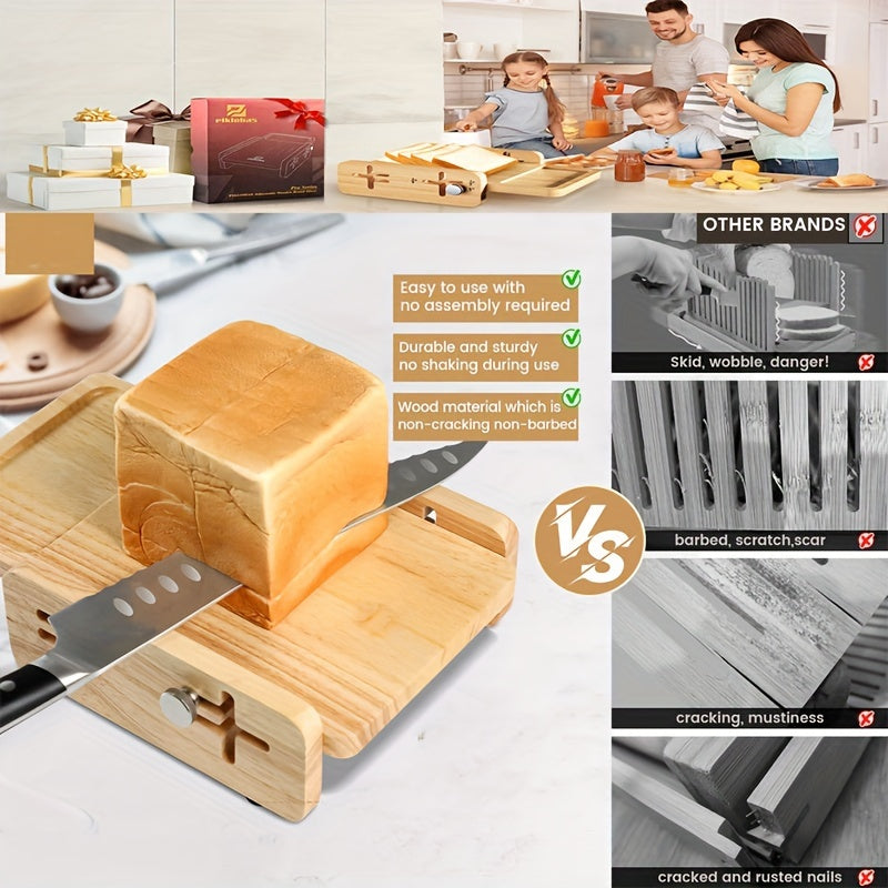 Wooden Bread Slicer with Storage Tray Kitchen Baking Tool