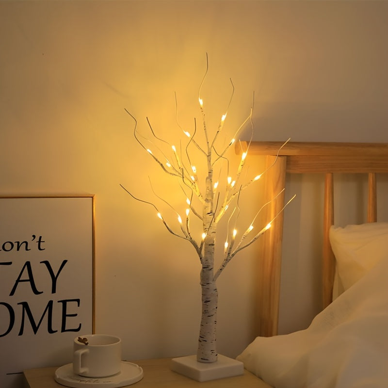 Wooden Birch Tree Table Lamp with Adjustable LED Battery Operated for Bedroom Decor