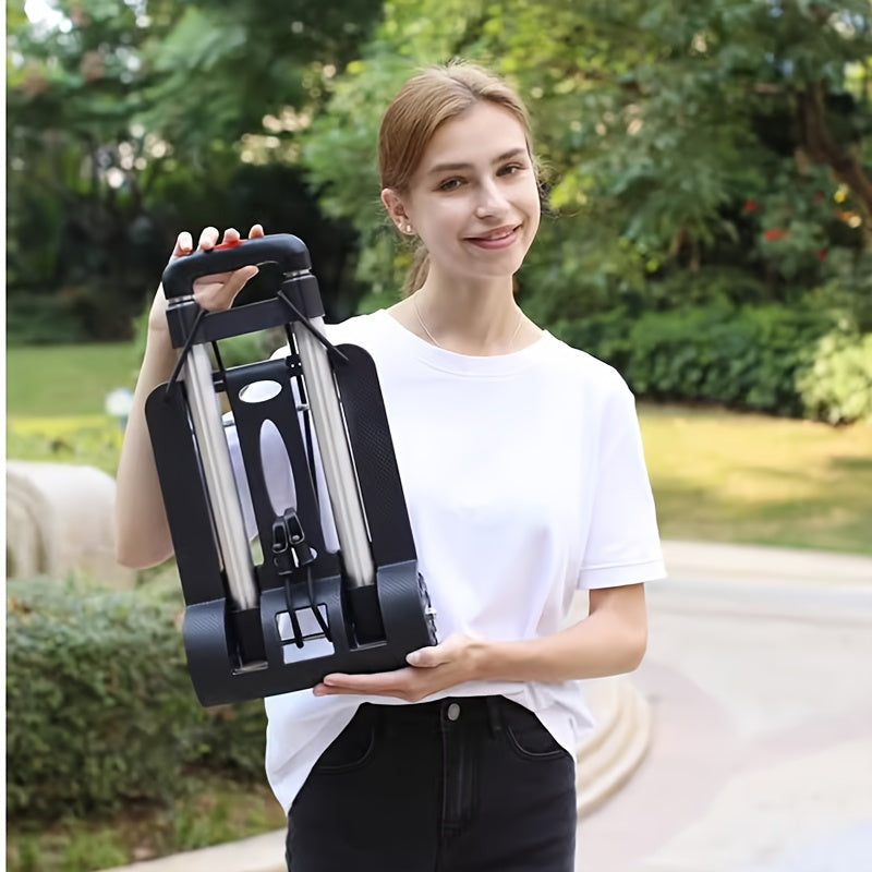 Black Ultra-Light Folding Trolley with 2 Wheels for Groceries and Camping