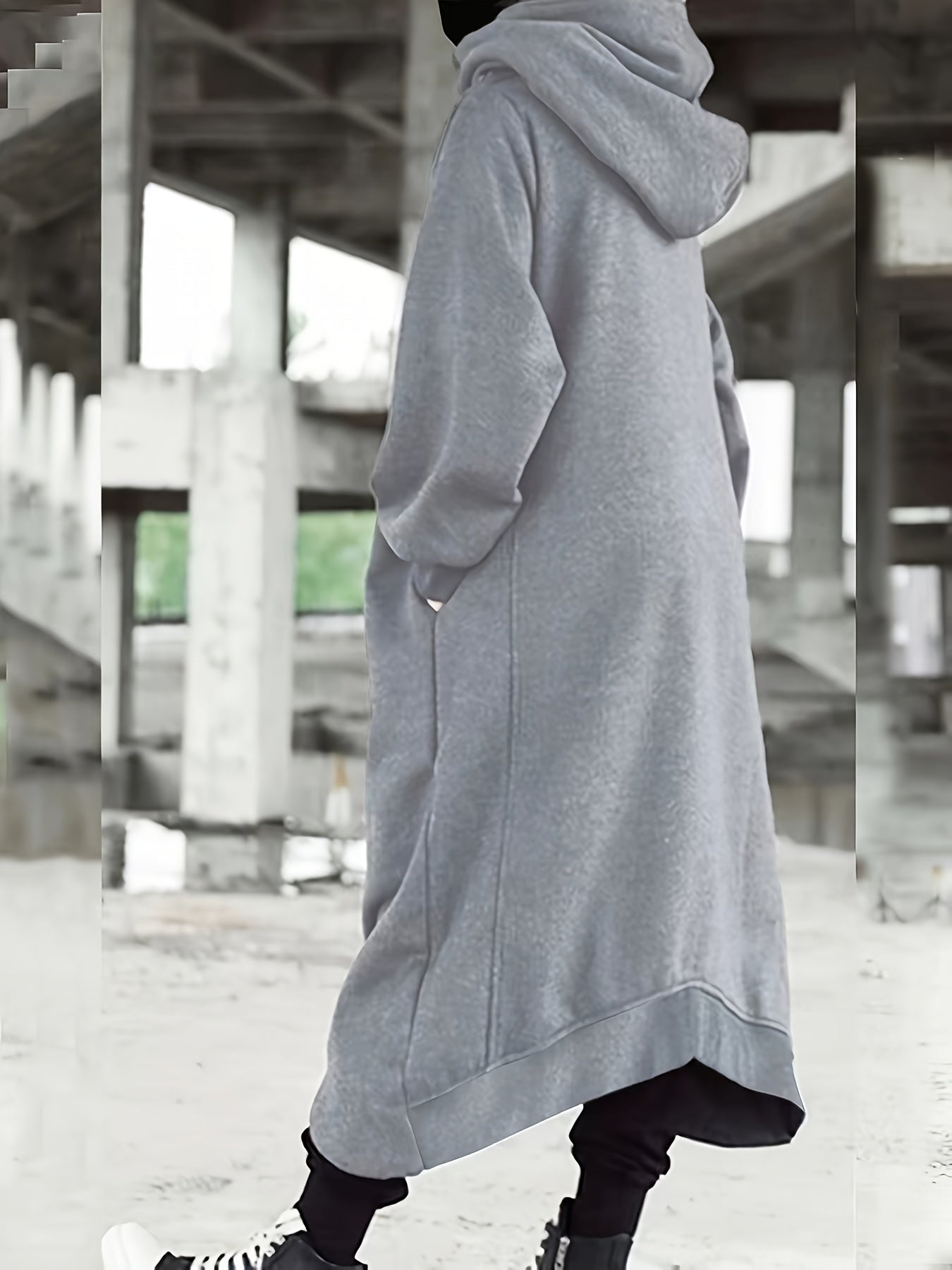 Women's Black Oversized Hoodie with Full Zip and Front Pockets for Fall Winter Casual Style