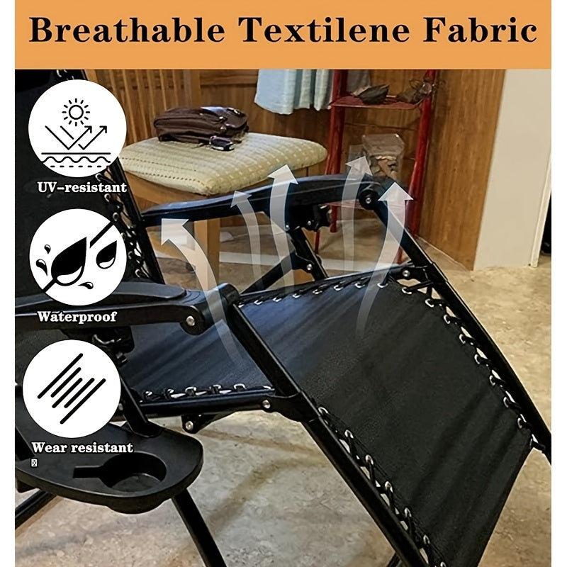 Black Zero Gravity Chair Replacement Fabric Set for Lounge and Patio Recliners