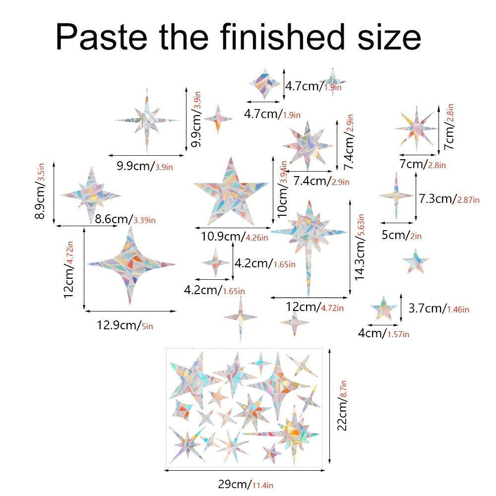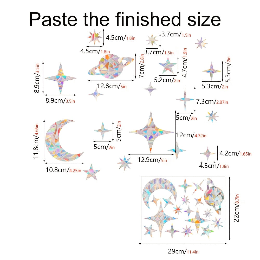 Rainbow Prism Static Cling Window Stickers Set with Glitter Star Moon Decals for Eid Decor