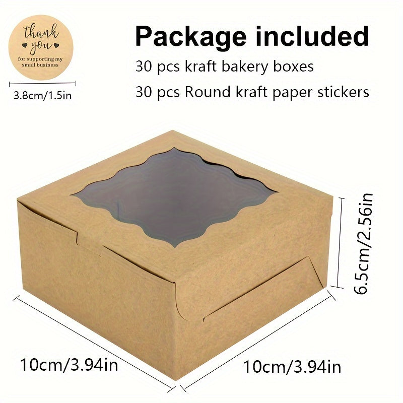 Box of 30 Brown Bakery Boxes with Windows for Cookies Cakes and Macarons