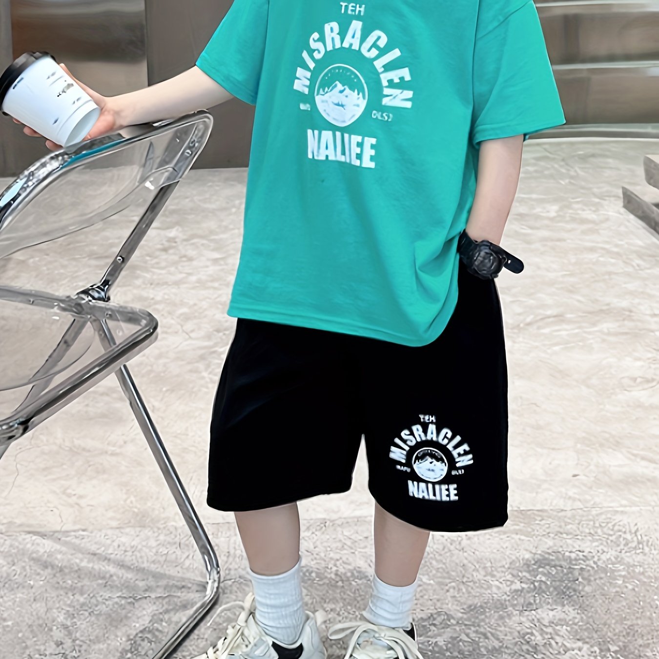 Boys' 2-Piece Cotton Short Sleeve T-Shirt and Shorts Set for Medium and Large Kids