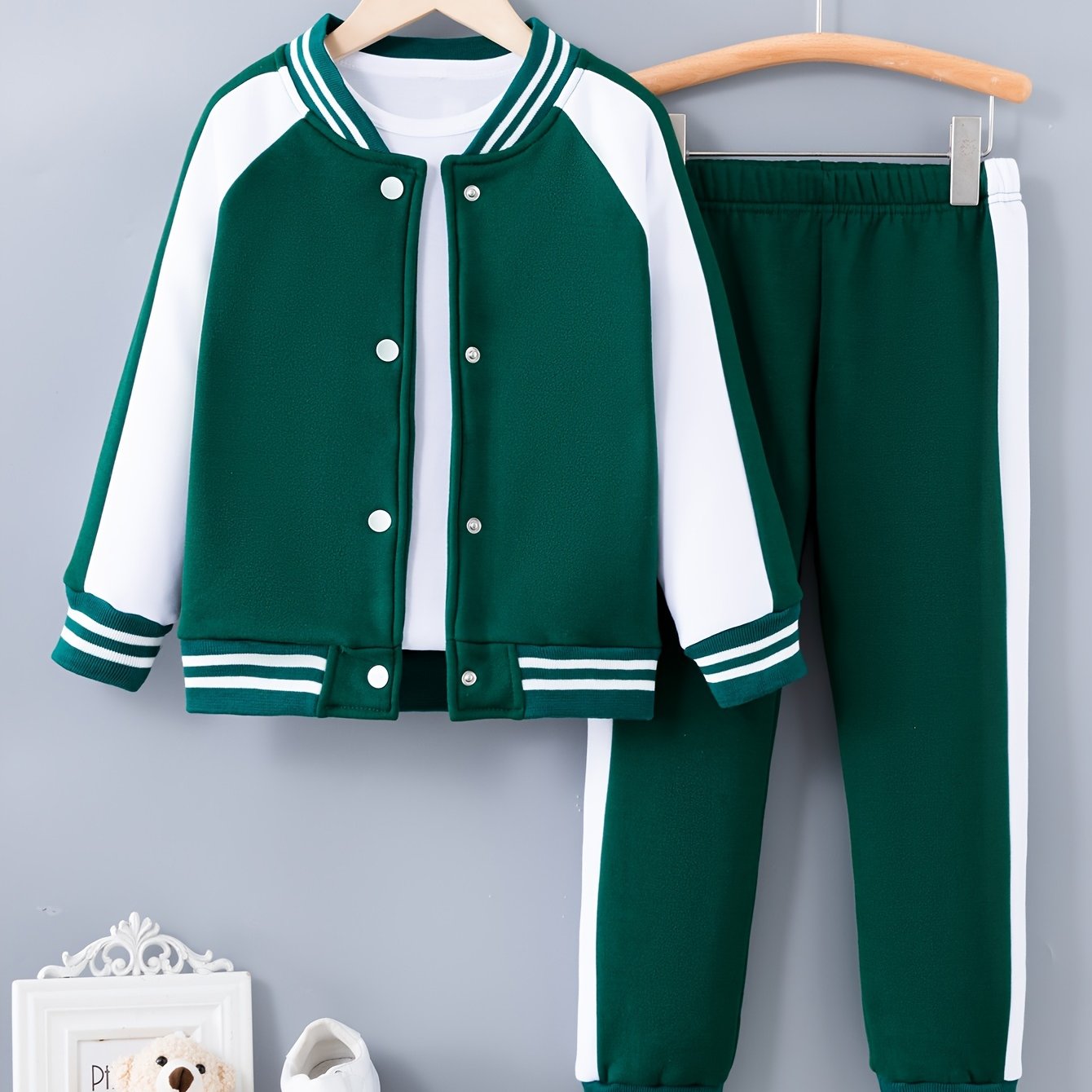 Boys' Polyester Baseball Suit and Pants Set Solid Color Spring Fall Casual