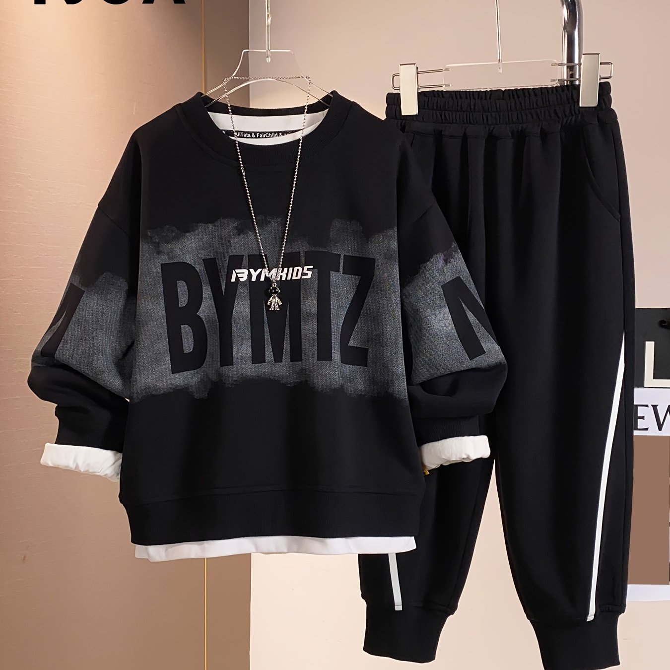 Boys' Cotton Blend Athletic Set Long Sleeve Sweatshirt and Joggers for Spring Fall