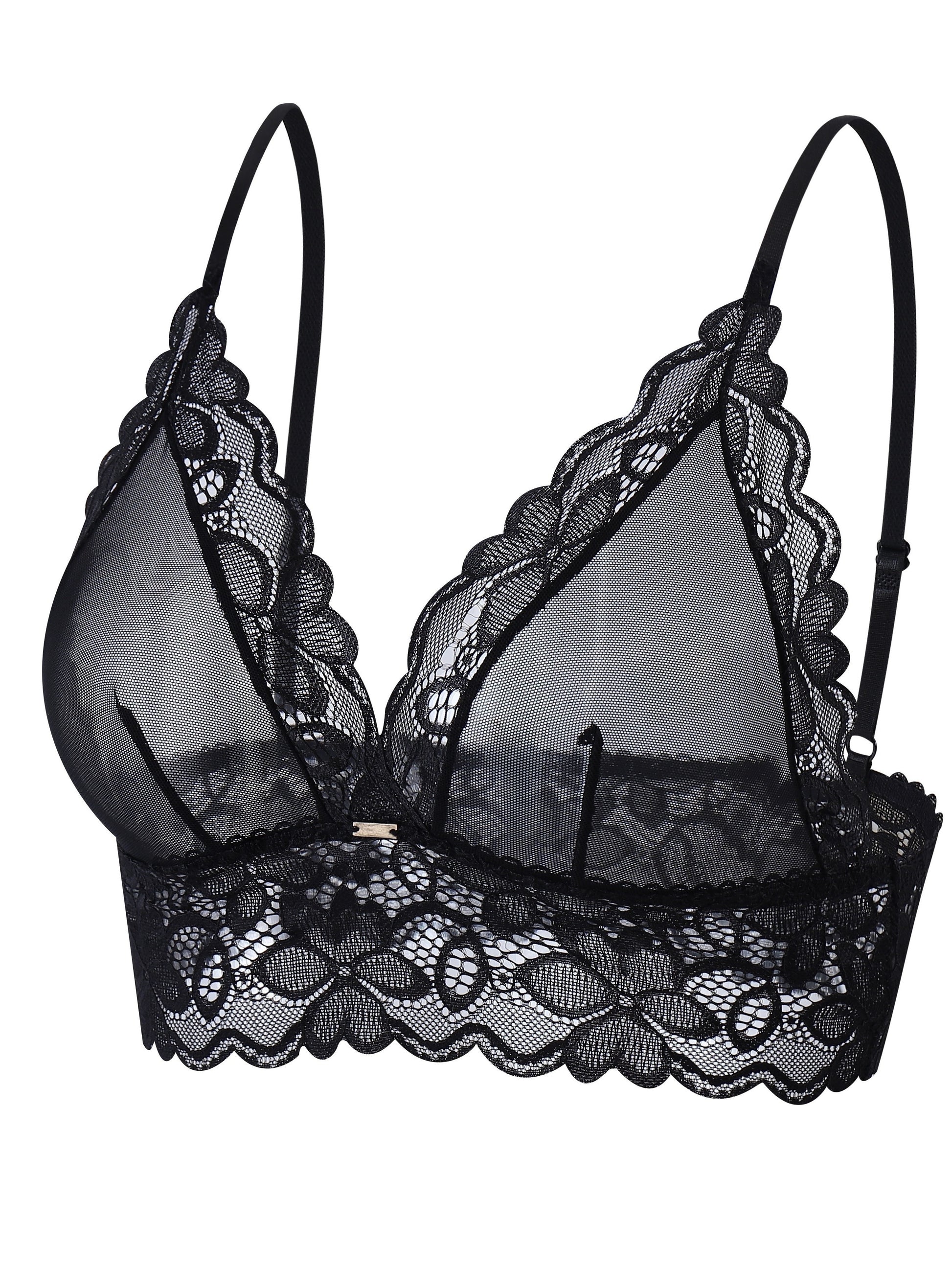 Women's Breathable Floral Lace Unlined Bra with Scallop Trim Lingerie