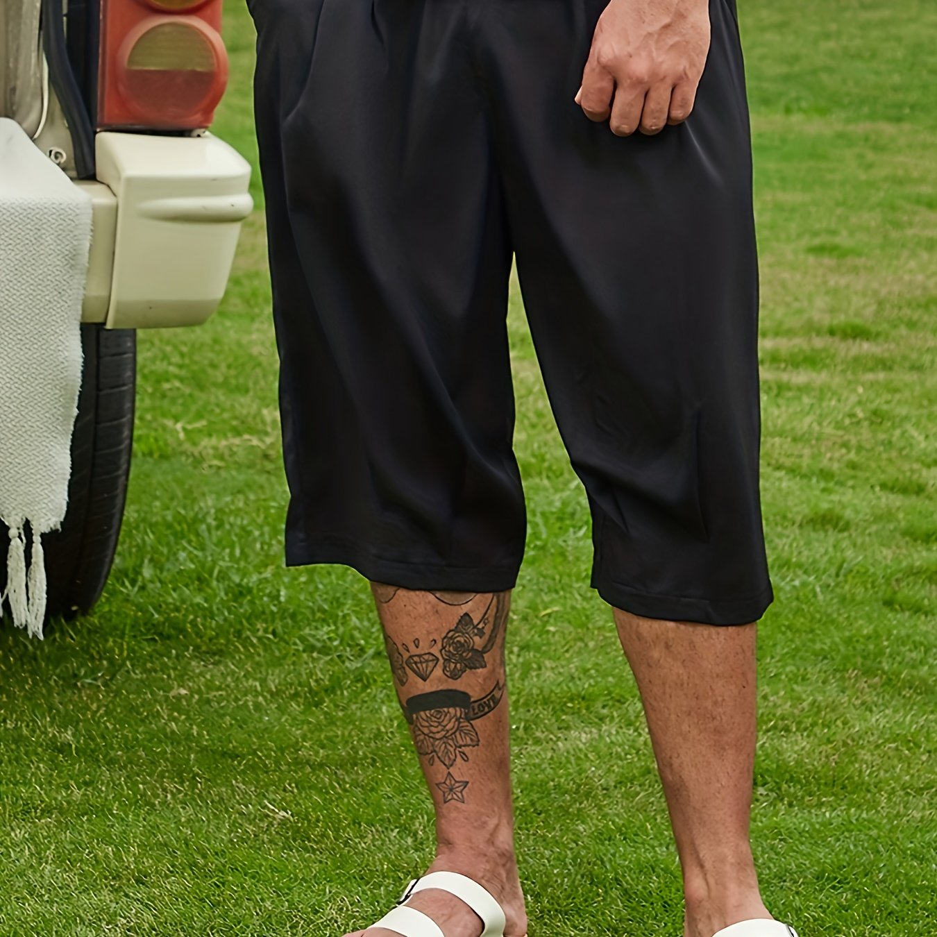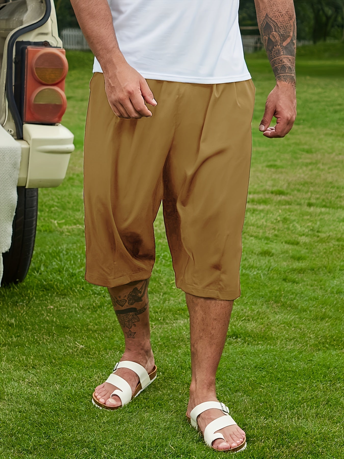 Plus Size Men's Breathable Solid Capri Pants Casual Summer Loose Fit