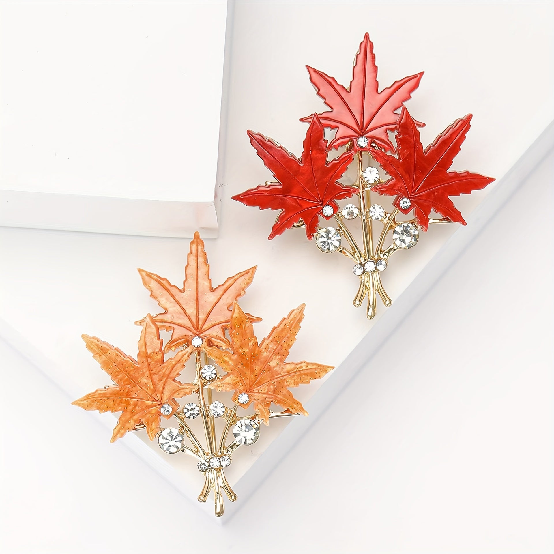 Retro-Inspired Alloy and Acrylic Three-Leaf Maple Brooch for Women