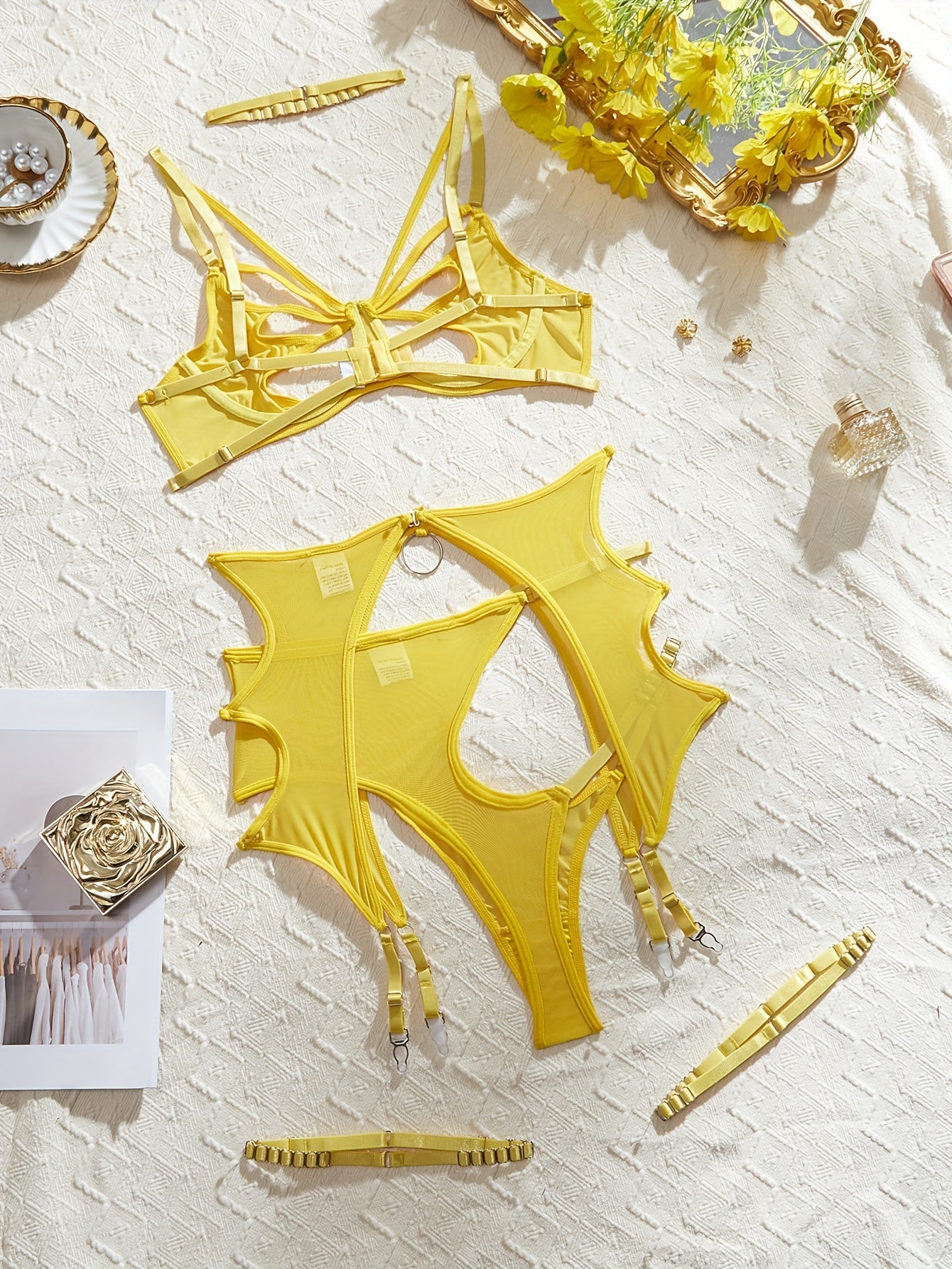 Women's Butterfly Lingerie Set with See-Through Spaghetti Straps and Leg Straps Bra and Panty