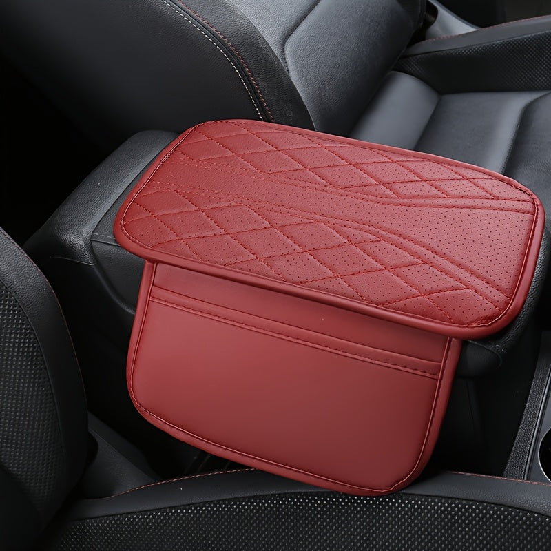 Car Interior Armrest Cover Diamond Stitch PU Leather Storage Organizer Gray