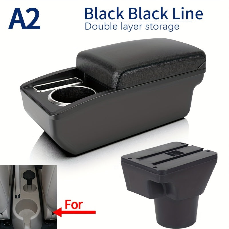 Car Interior Armrest Storage Box Black Double Layer Cup Phone Holder