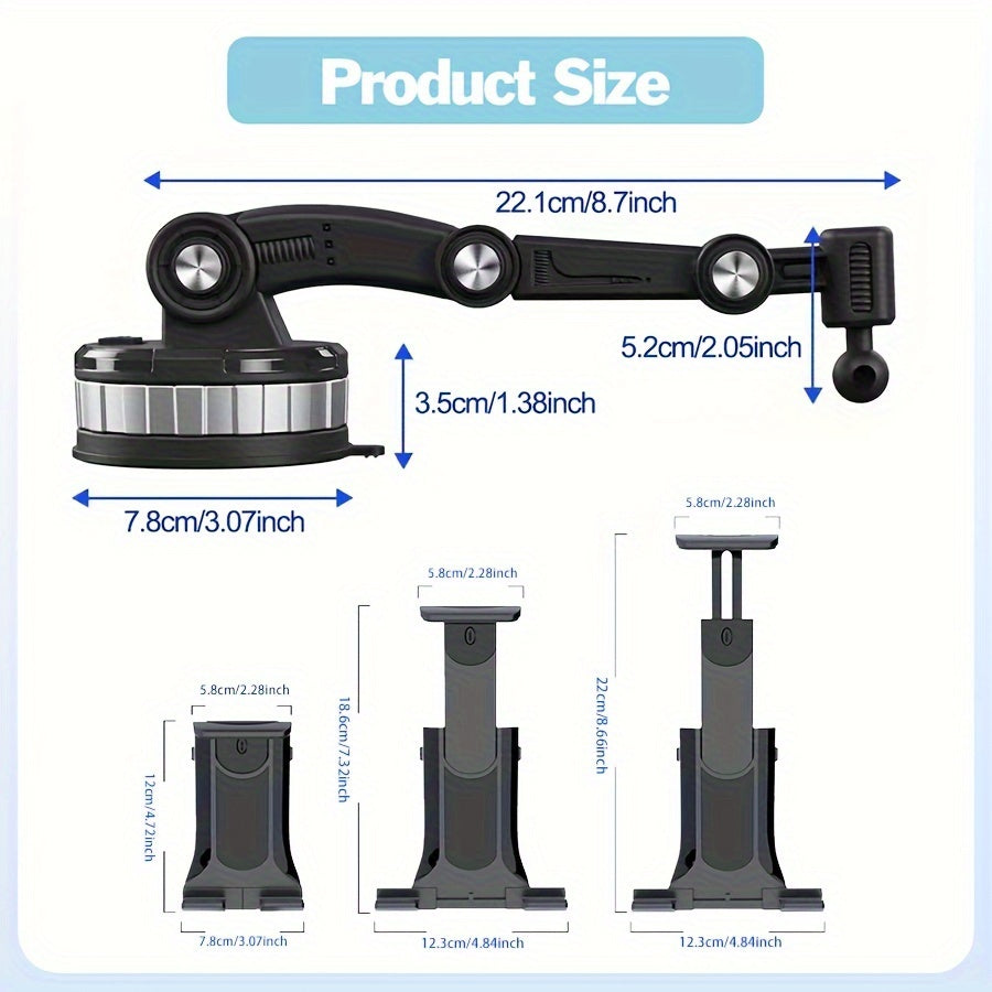Car Suction Cup Tablet Holder Phone Mount for Car Adjustable Arm Compatible with 10-33cm Devices